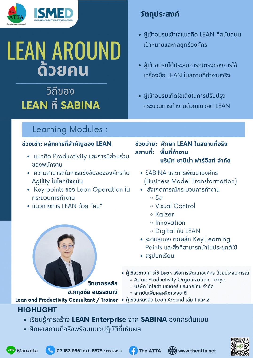 ISMED ร่วมกับ ATTA จัดอบรมพร้อมศึกษาดูงาน หัวข้อ ”LEAN AROUND ด้วยคน“