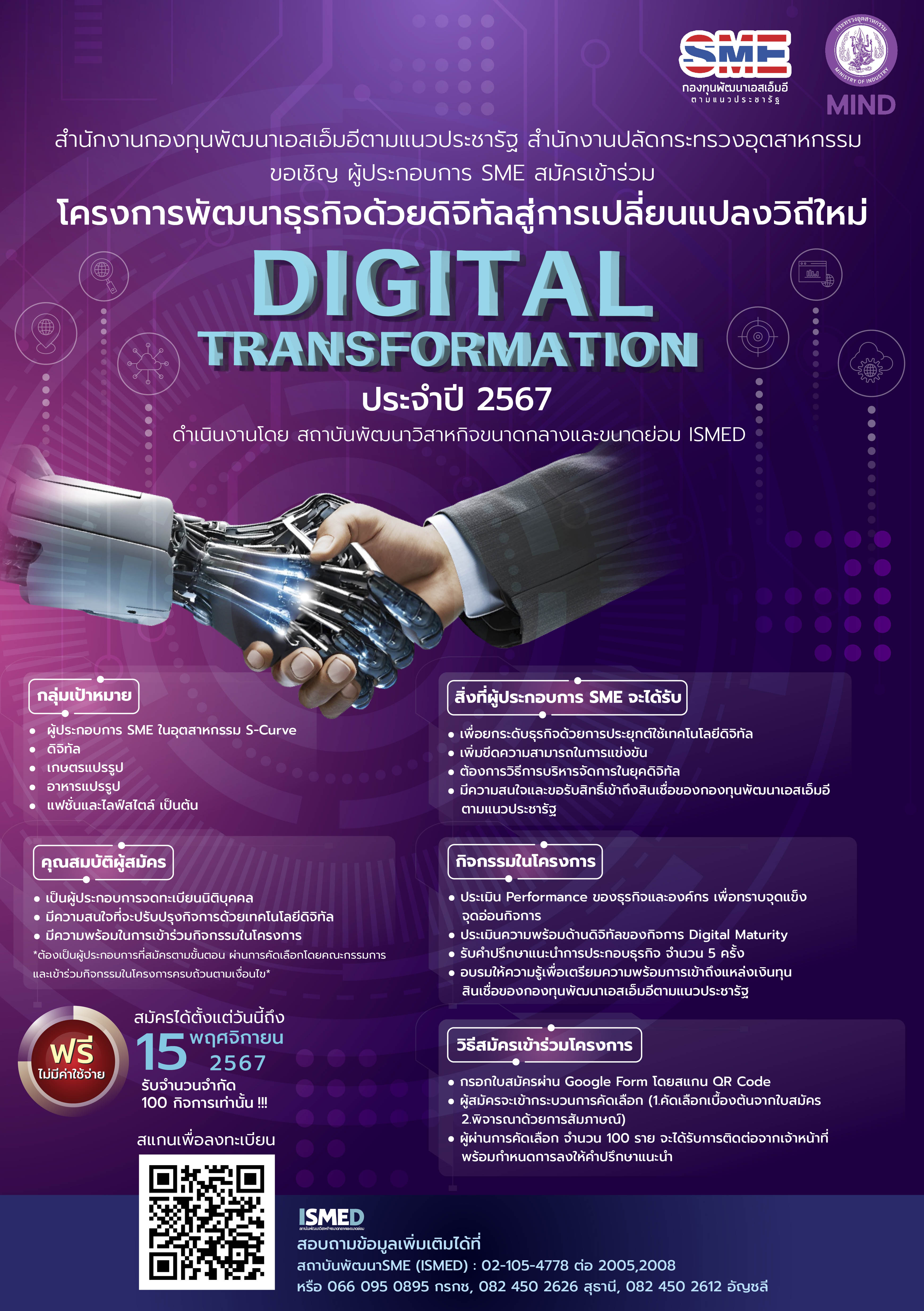 ขอเชิญสมัครเข้าร่วม “โครงการพัฒนาธุรกิจด้วยดิจิทัลสู่การเปลี่ยนแปลงวิถีใหม่ (Digital Transformation)”